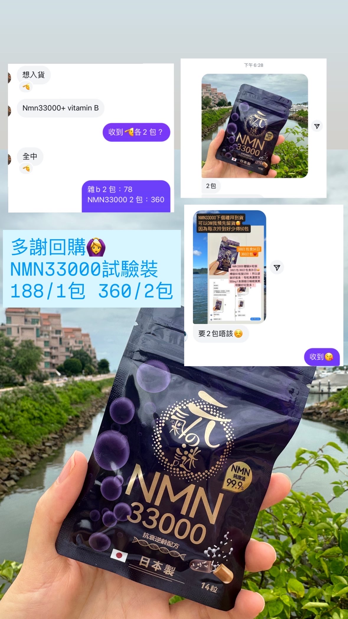 元氣の謎全新高效抗氧化* 純度達99.9%* NMN 33000 抗衰逆齡配方🫡 呢個體驗裝抵食!1 包14 粒,每粒含550mg 美國原料 日本製造 🔸關注逆齡延緩衰老 🔸關注身體機能 🔸關注免疫力 🔸關注美容養顏 🔸關注心血管健康 🔸激活長壽因子 增加體內 NAD+水平 🔸有助身體代謝 提升活動機能 🔸促進大腦健康 提升專注力 🔸促進免疫細胞生 成增強免疫功能 🔸有助降低體脂肪 🔸防止心血管疾病 成份:β-煙酰胺單核苷酸(550mg)、 DRcaps®植物膠囊(殼羥丙甲纖維素)、抗結劑(E470、E511)。 不含:麩質,小麥、乳製品、雞蛋、大豆、堅果、轉基因、人造香料、人造色素、防腐劑。 建議服用方法:每次1粒,每日1次。建議連續服用3個月以上,以達至保健效果。 儲存方法:請置於陰涼乾燥處,避免火源及陽光直射。 注意:如果您懷孕、哺乳、有健康問題或正在服用任何藥物,請於服用前諮詢您的醫生。