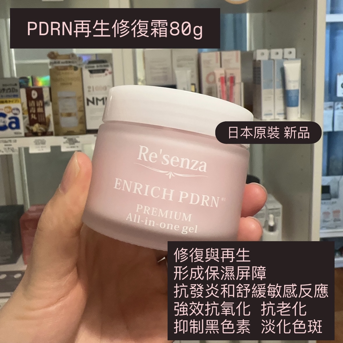 日本Re’senza ENRICH PDRN 再生修復霜80g PDRN出埋面霜La😍 399/1 鑵80g (日本售價11000 YEN) 本週新品優惠價368 核心成分PDRN: PDRN全名為聚去氧核糖核苷酸,取自鮭魚的DNA提取的核苷酸片段(PDRN),其 DNA 結構與人體相容性高,且被認為富含促進修護的核苷酸片段 主打功能是修復與再生: 促進組織修復與再生,提供細胞修復所需的核苷酸,細胞活性、促進膠原蛋白合成,加加速受損肌膚的修復和再生 形成保濕屏障 通過添加透明質酸等保濕成分,加強肌膚的保水能力,並形成保濕屏障 含有3 種膠原蛋白種4 種發酵萃取物的保濕成份 抗發炎和舒緩敏感反應 甘草酸二鉀具有抗炎舒缓,能有效鎮定受刺激、泛紅的肌膚,對敏感皮膚,異位性皮膚炎有舒緩作用 強效抗氧化,抗老化與淡化色斑 含有備受關注的美容成份谷胱甘肽,能抑制黑色素生成,將深色黑色素轉為淺色褐色素,使膚色更均勻透亮,淡化色斑 另外,生物酚提供強效的抗氧化和抗衰老作用,可中和自由基以預防皮膚過早老化,並能促進膠原蛋白增生,增加肌膚彈性