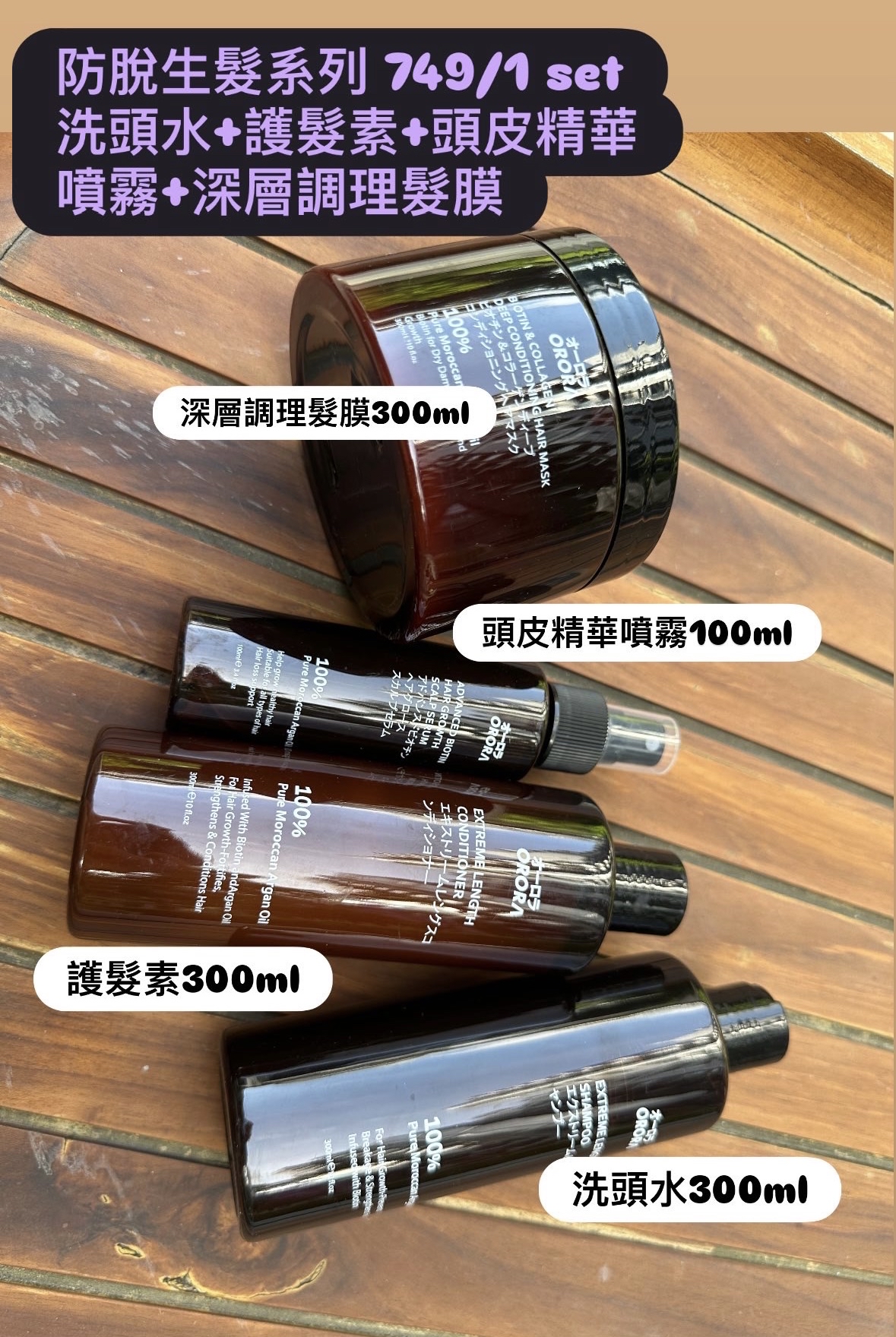 日本ORORA防脫生髮系列 套裝包括: 防脫生髮洗頭水300ml 防脫生髮護髮素300ml 防脫生髮頭皮精華噴霧100ml 膠原蛋白+維生素深層調理髮膜300ml